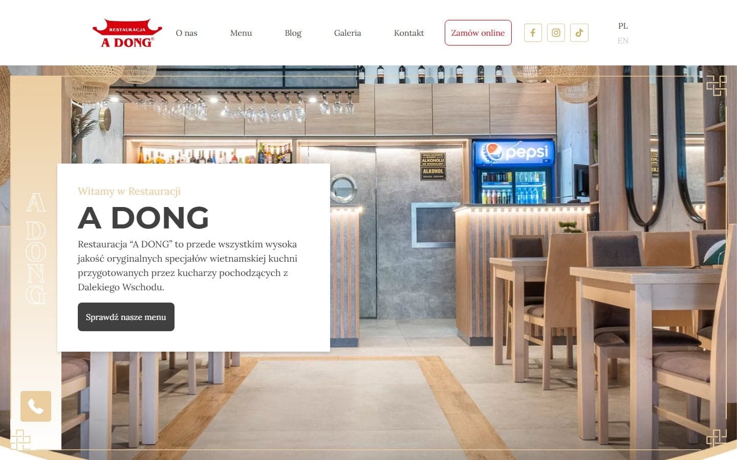 adong.plVisit websiteThe A Dong restaurant chain, one of the oldest Vietnamese cuisine brands in the Kraków region and Silesia. Four locations: Modlniczka, Węgrzce, Niepołomice and Bielsko-Biała. Authentic Vietnamese dishes, a lunch menu (Mon-Fri 12:00-15:00 for 36.50 PLN), online orders through s4honline.pl. Around 1600 Google reviews with a 4.5/5 average. The site is bilingual (PL/EN).