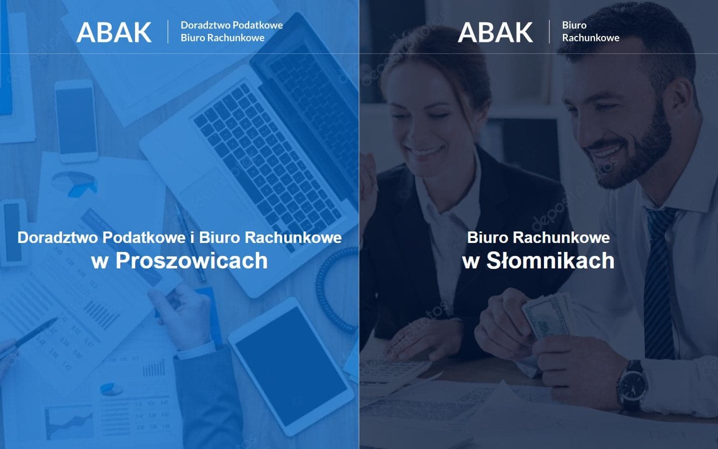 biuro-abak.plVisit websiteABAK has been in business since 1993, an accounting office with over 30 years of experience in Proszowice (ul. Wolności 2) and Słomniki (ul. Proszowska 49). Full bookkeeping, tax advisory, ZUS settlement handling, tax optimization and assistance with business registration. Long-term client relationships are the brand's core value.