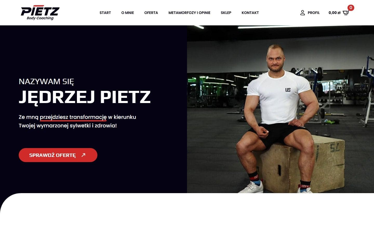 jedrzejpietz.plVisit websiteJędrzej's personal brand as a personal trainer with 11 years of experience and 224 documented client transformations. Individual training and nutrition plans, in-person 1:1 sessions at Fenix Gym Baranowo and online coaching. The site has a built-in store for products and training packages.
