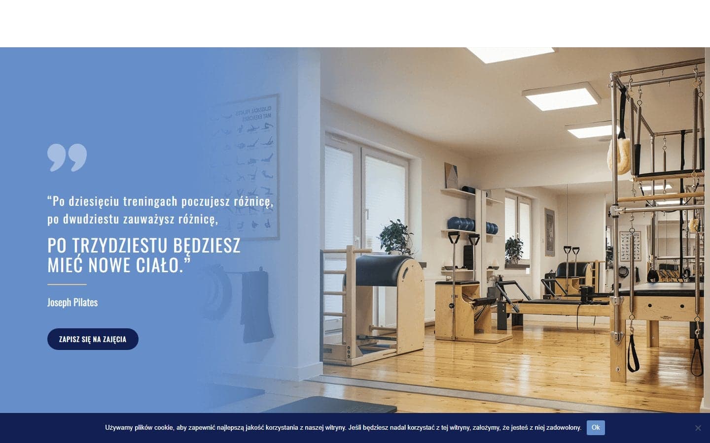 Studio dostało profesjonalną wizytówkę która oddaje poziom usługi. Klient szukający certyfikowanego pilates w Cieszynie trafia na stronę, widzi kadrę z kwalifikacjami, widzi sprzęt, widzi ceny — decyduje.