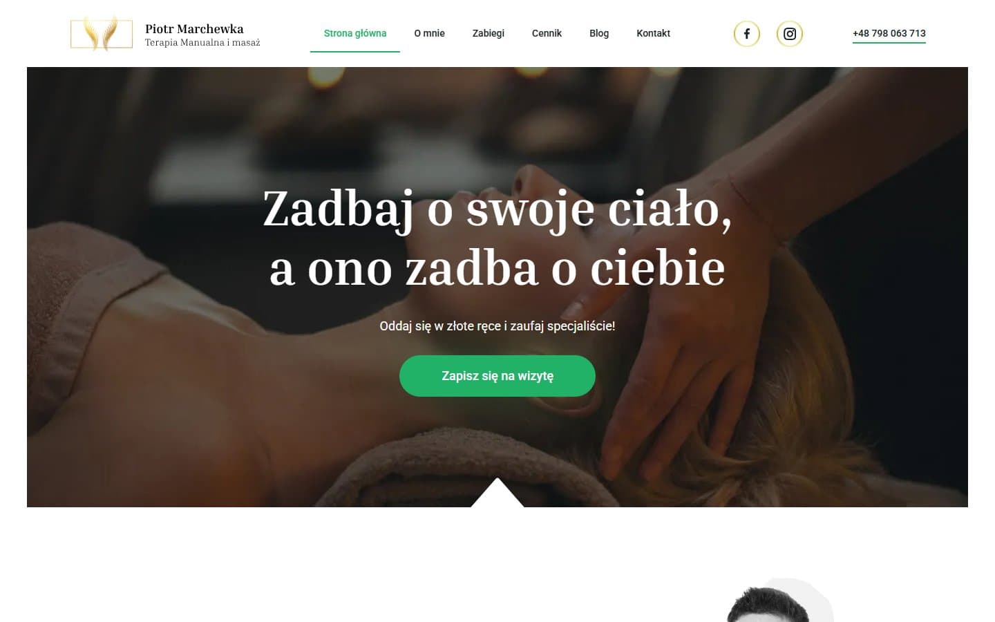 piotrmarchewka-masaz.plVisit websitePiotr Marchewka, a manual therapist with 4 years of experience and currently a Master's student of physiotherapy. His practice in Aleksandrów Łódzki (ul. Zygmunta Augusta 6) offers Deep Tissue Massage (MTG), Hot Stone, Chinese cupping, Kobido (Japanese lifting with 500 years of tradition) and manual voice therapy. The site includes an online booking system and an educational blog.