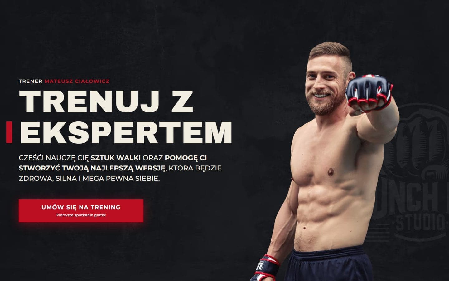 Punch Fit Studio to studio sztuk walki w Słomnikach prowadzone przez Mateusza Ciałowicza — trenera z dużym doświadczeniem w kickboxingu, boksie i treningu personalnym. Kolejny klient z mojej okolicy, kolejna realizacja lokalna. Studio działa przy ul. Grunwaldzkiej i obecnie ma 5.0/5 w Google Maps — to solidny wynik w branży gdzie każda opinia ma znaczenie.