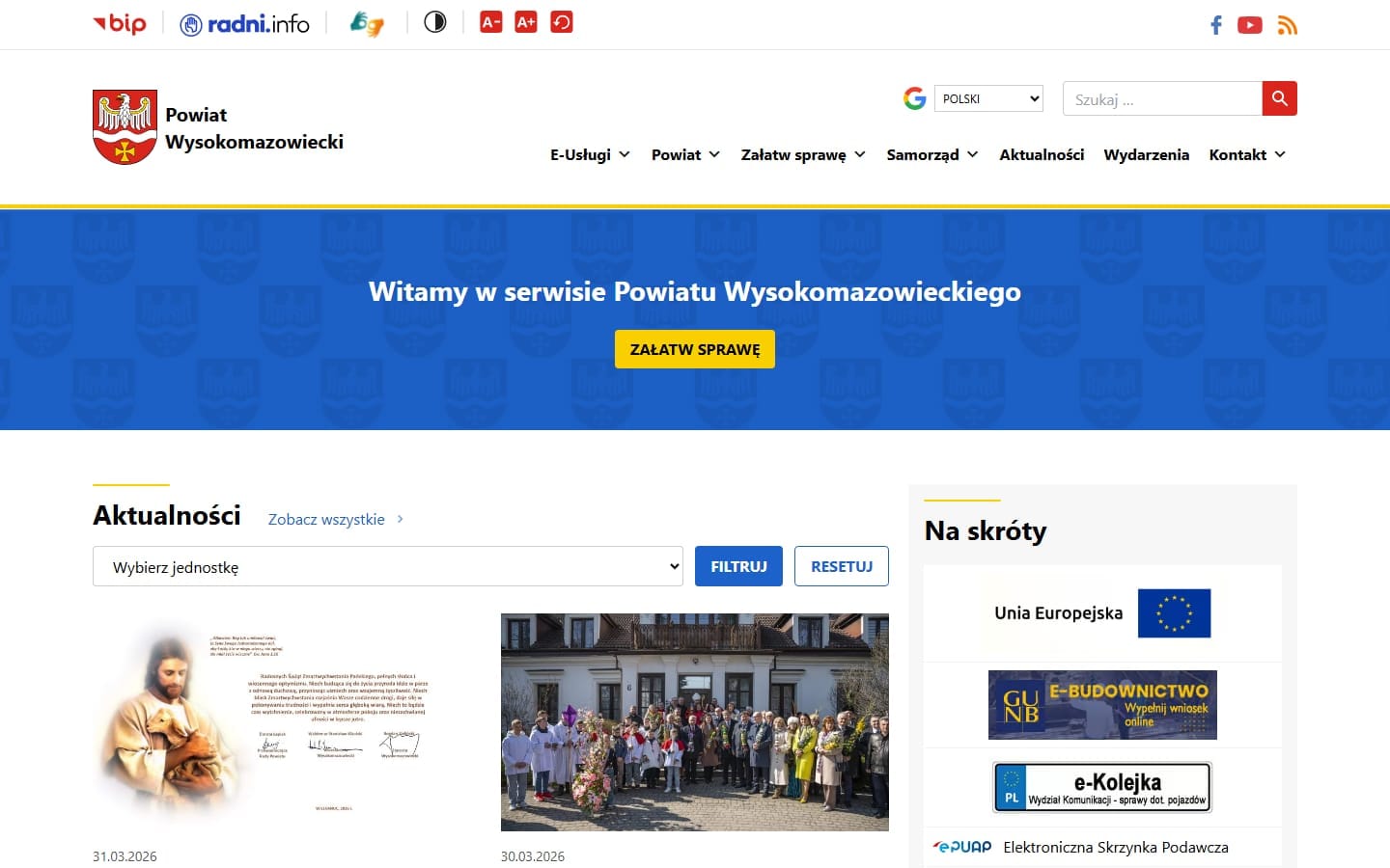 Portal powiatu z WCAG, redesign i opieka techniczna.